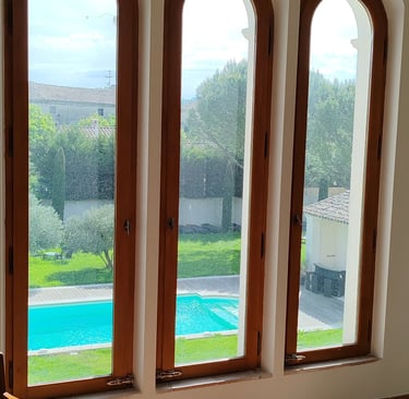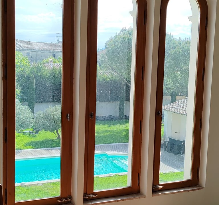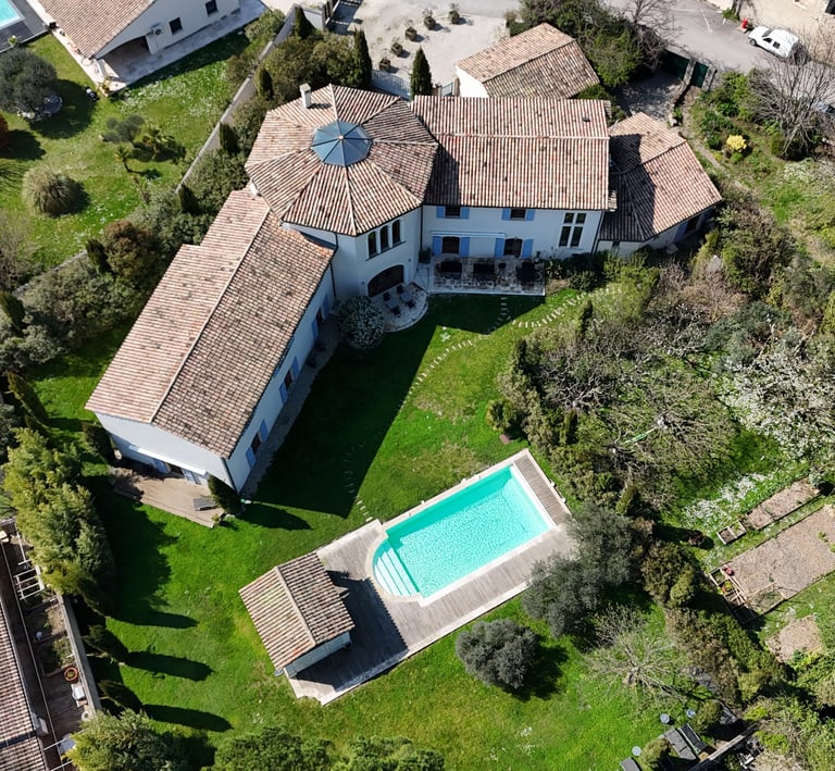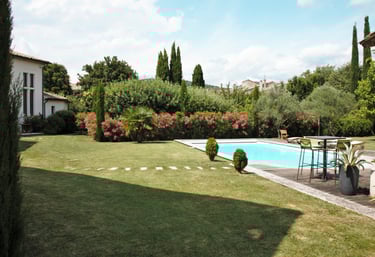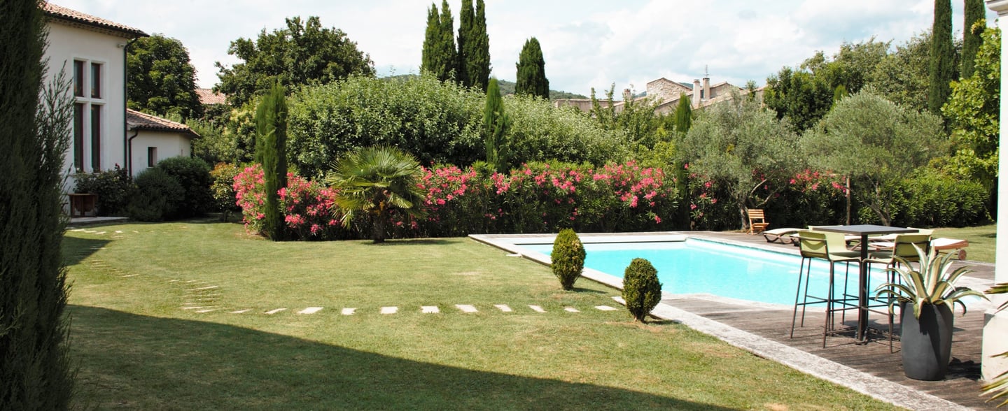 Hautes haies de lauriers roses, pin méditéranéens, oliviers...
