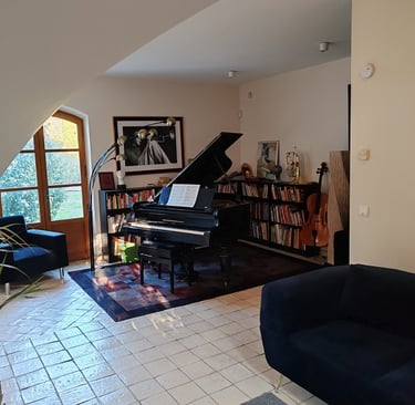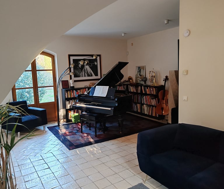Petit salon avec piano à queue