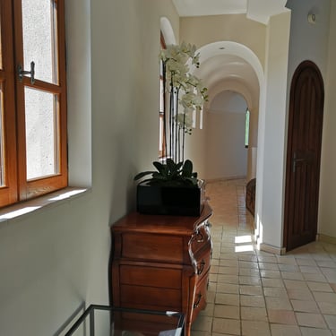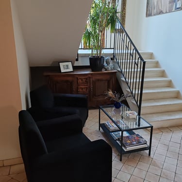 1 Suite 1 en RDC : composée de 2 chambres indépendantes dont 1 très grande de 45 m², séparées par un couloir, lits king-size 180x200, TV dans chaque chambre, 1 salle d'eau avec douche à l'italienne et 2 vasques, WC séparé, grand dressing, coffre-fort
